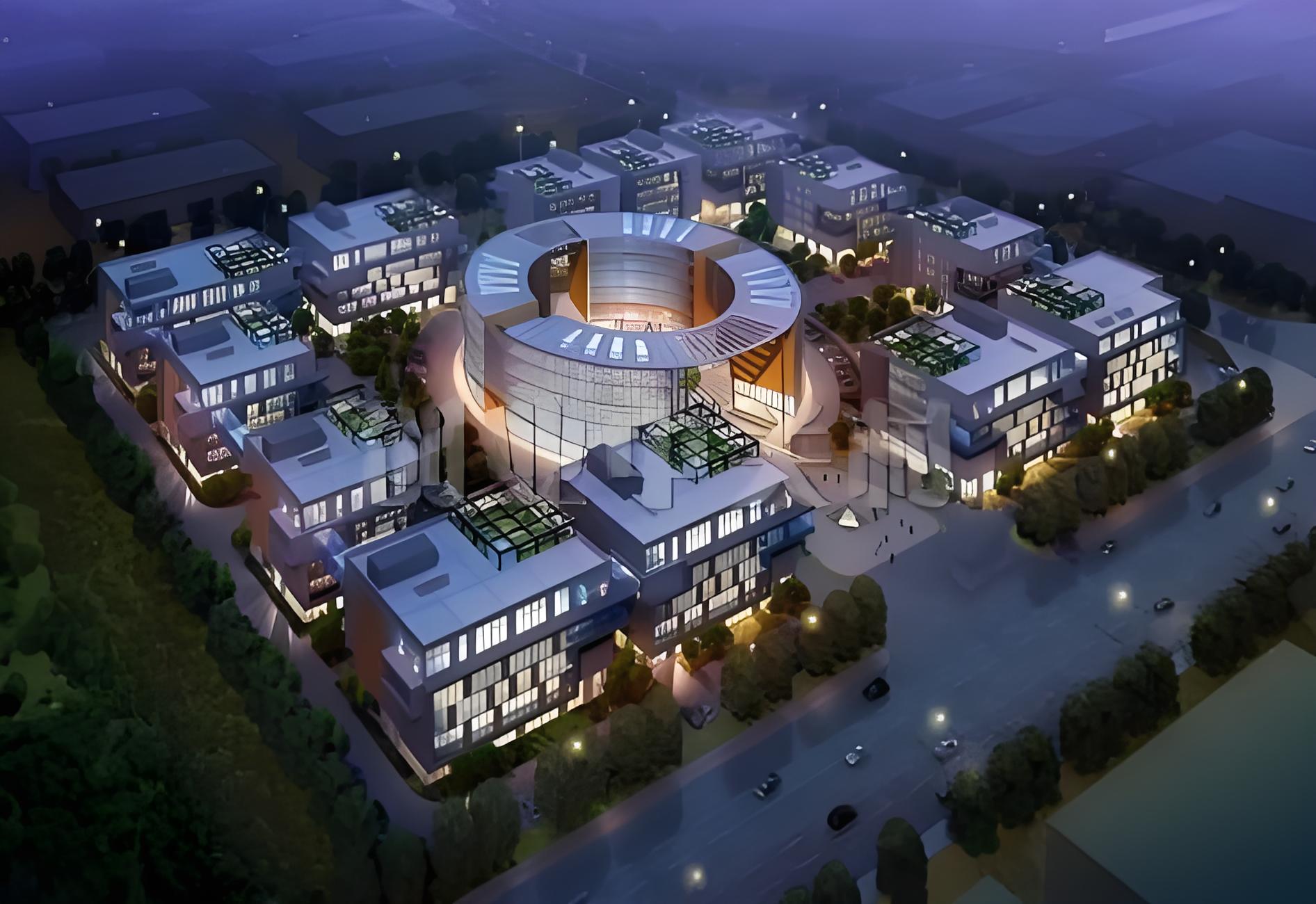 项目全区地下一层为20000平方米公共服务区,配有酒店、餐厅、食堂、超市和咖啡厅,地下二层为车库。
